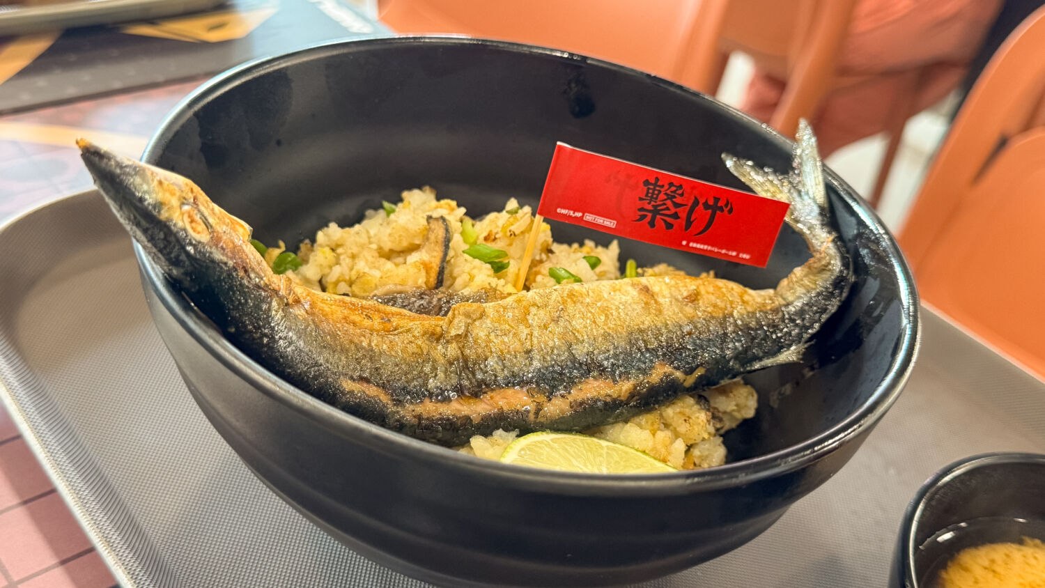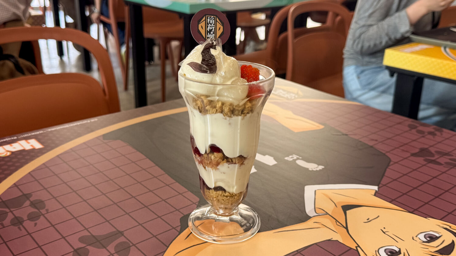 On the inside, themed décor adorns the tables and pillars, joining two larger-scale installations that pay homage to the franchise – one featuring a net and the Miya brothers, Atsumu and Osamu, and another set up like a court, complete with a scoreboard flipper and a giant display showcasing the various trailers and iconic moments over the years. Keep your eyes peeled, and there’s even a neat reference to Hinata’s highest jump reach (fans can take on the jump challenge and see how they fare against the Ultimate Decoy!).