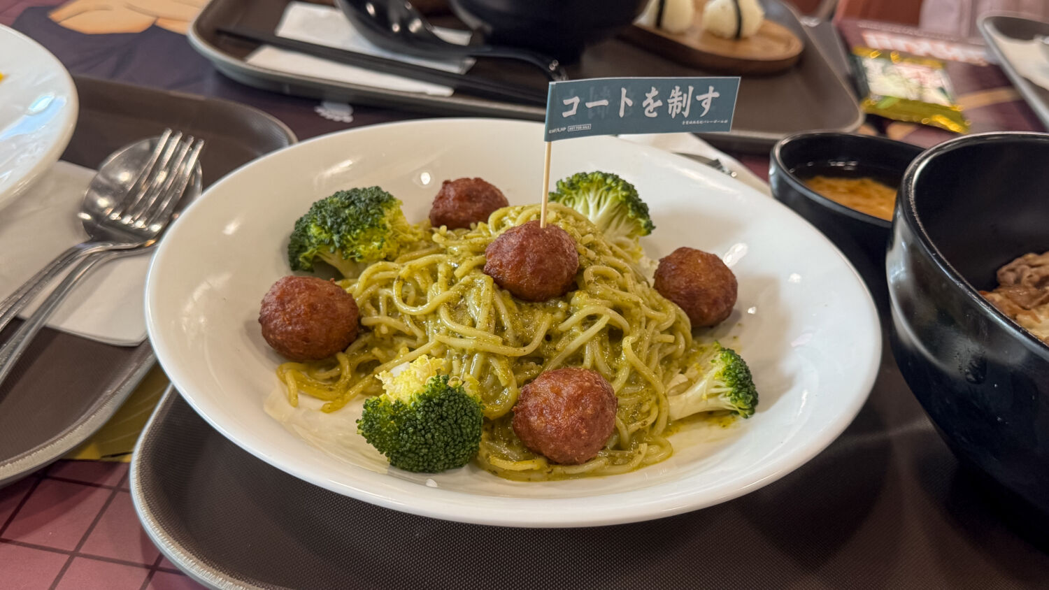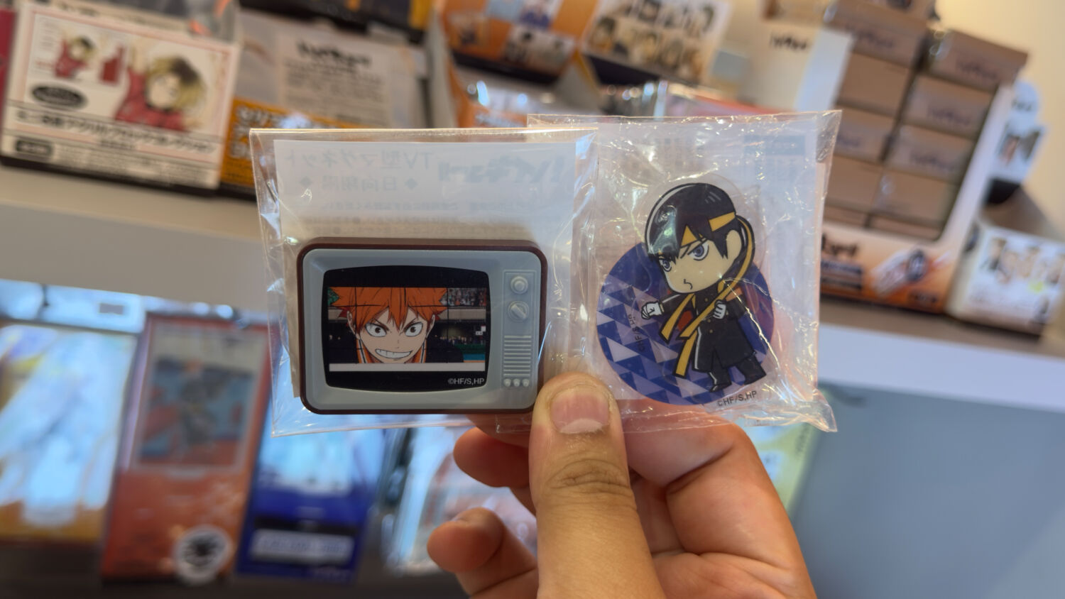 The excitement kicks in before visitors step into the café, with standees of popular characters like Hinata, Kageyama, Tsukishima, Oikawa, Kenma, and Kuroo lining the exterior, and the much-loved Bokuto-Akaashi pair greeting them at the entrance. Unlike before, the merchandise area is tucked away from the dining premises in a dedicated spot, while a row of gacha machines presents an opportunity to tempt luck.