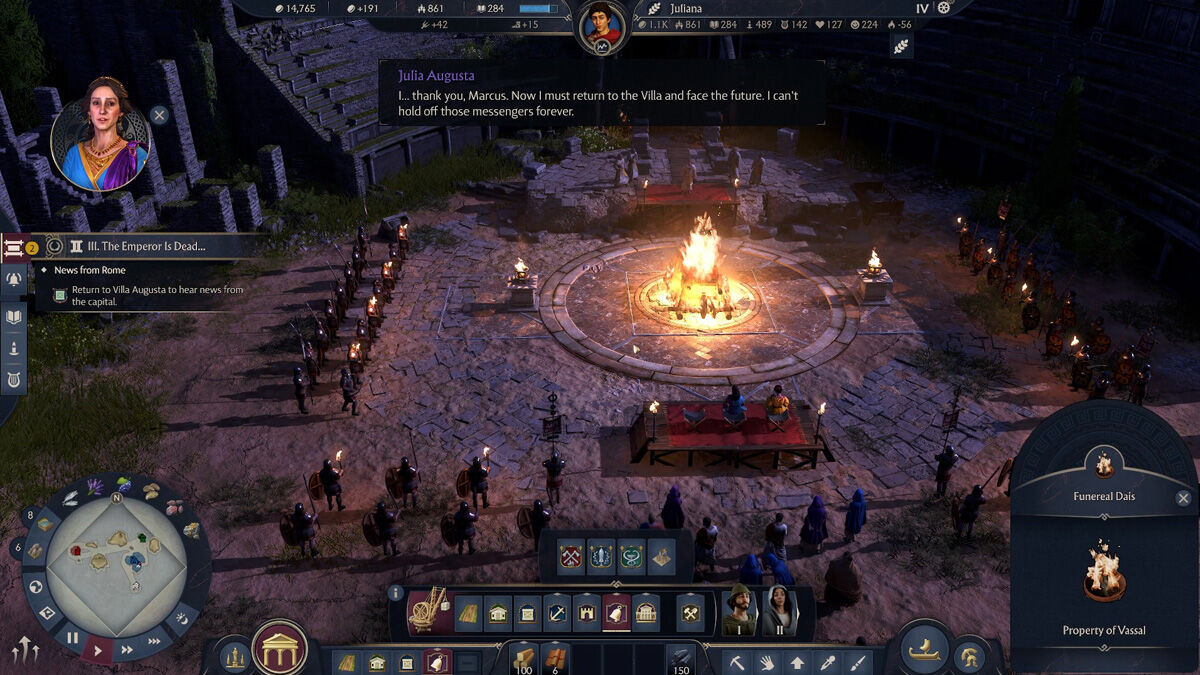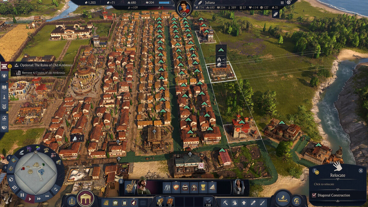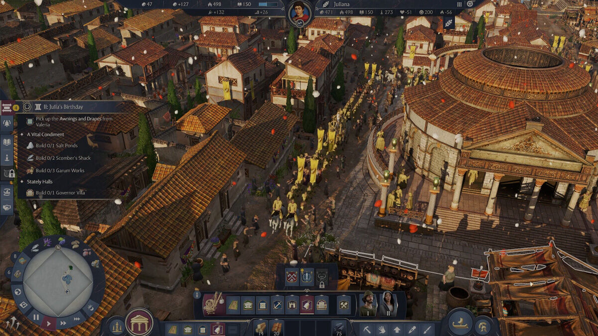 One such scenario in the campaign gives you the choice to determine if Empress Julia’s daughter, Diana, would attend her birthday. By choosing to submit to the whims of the current authority and beg Diana to attend, the game questions your capabilities on whether you can survive the “cutthroat world of provincial governance”. Another scenario presents you with encountering a Libertus struggling with a load of timber, and whether you should seize his goods, wish him well and move on, or buy his supply. These narrative junctions are where the game allows you to exercise your authority, and they feel significant, giving you a sense that you are shaping the narrative through your actions. As the narrative around you changes, the way you adapt to these consequences affects how you manage resources and people in your city.
