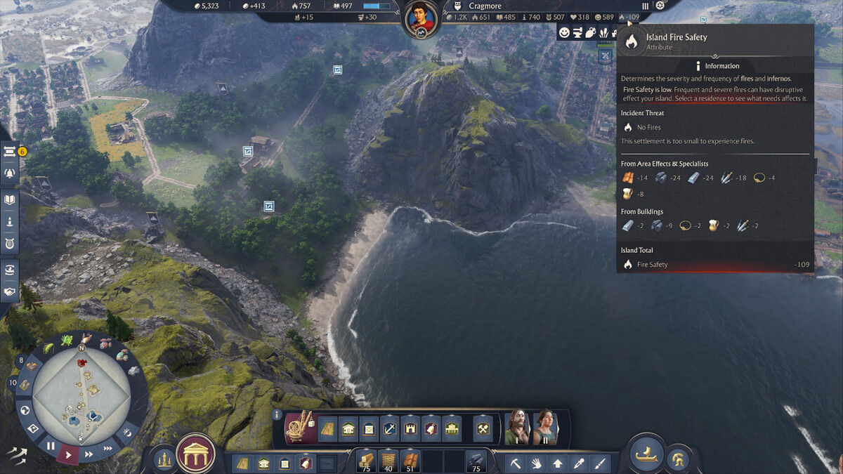 With so much at stake, one would expect the game to include a feature that illustrates what their city lacks on a more visual scale. Instead, players are only able to see the problems their city faces through a list of resources they manage. This list only shows buildings that generate or reduce resources like denarii (The game’s currency), happiness, or fire safety. If a city is in danger of frequent fires, as parts of it are exposed to facilities that are prone to cause fires, you would expect to know various hotspots around your city so that you can react by building more wells or fire watches strategically. Instead, the information given to you is only a list of fire-causing amenities, and that fires can happen around your city arbitrarily, which breaks the realism of the city-building experience. It would help if the developers could include a switchable feature in their user interface that highlights potential hotspots where disasters may occur more frequently. This would prevent players from spamming to build all safety amenities around the city.