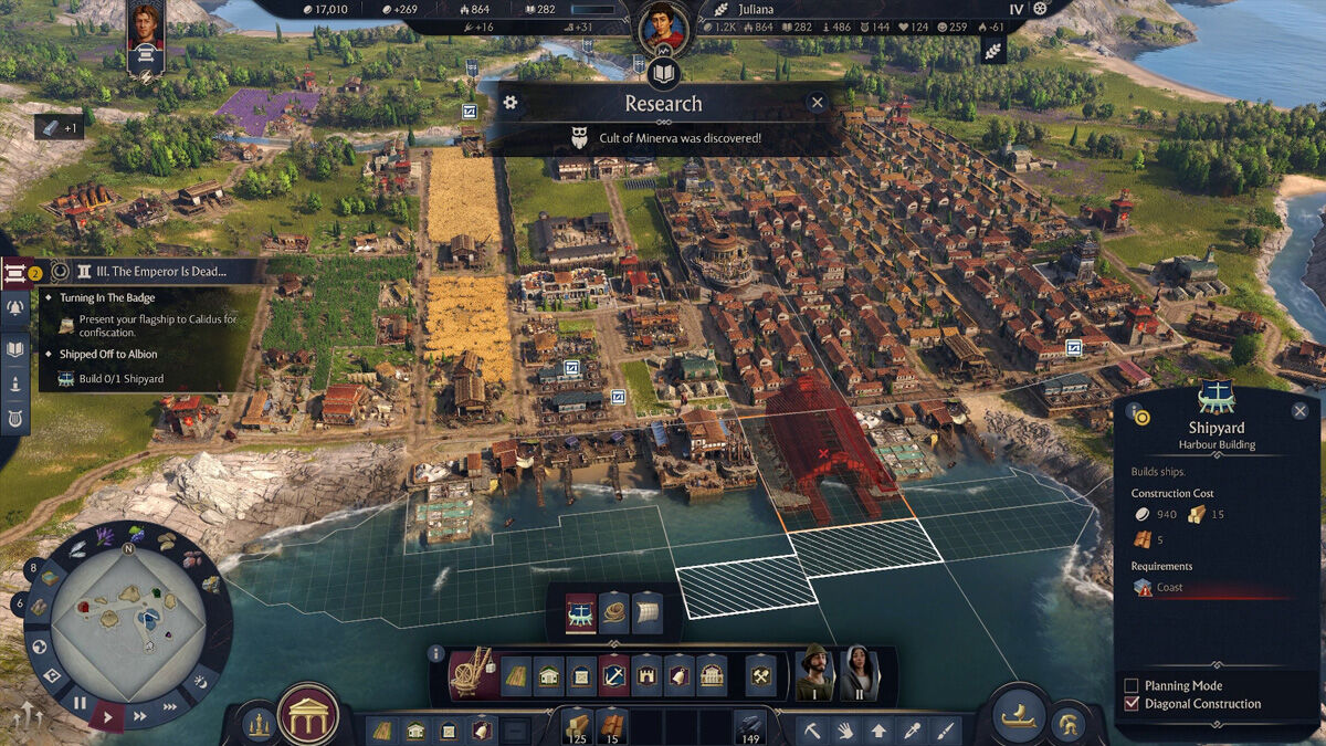 Religion and research also enhance the city-building experience of Anno 117: Pax Romana, and the game offers a choice of specific deities and pantheons – mainly Roman or Celtic – that your people will worship in each city. Each deity chosen not only grants boons and boosts in producing specific resources, but it also opens options in vast research trees. Choosing to worship Roman gods allows you to research cults like the Cult of Mercury-Lugus, which will boost crafting and trade. On the other hand, choosing to worship Celtic gods opens up research on cults like the Cult of Cernunnos, which is associated with increased production and health.