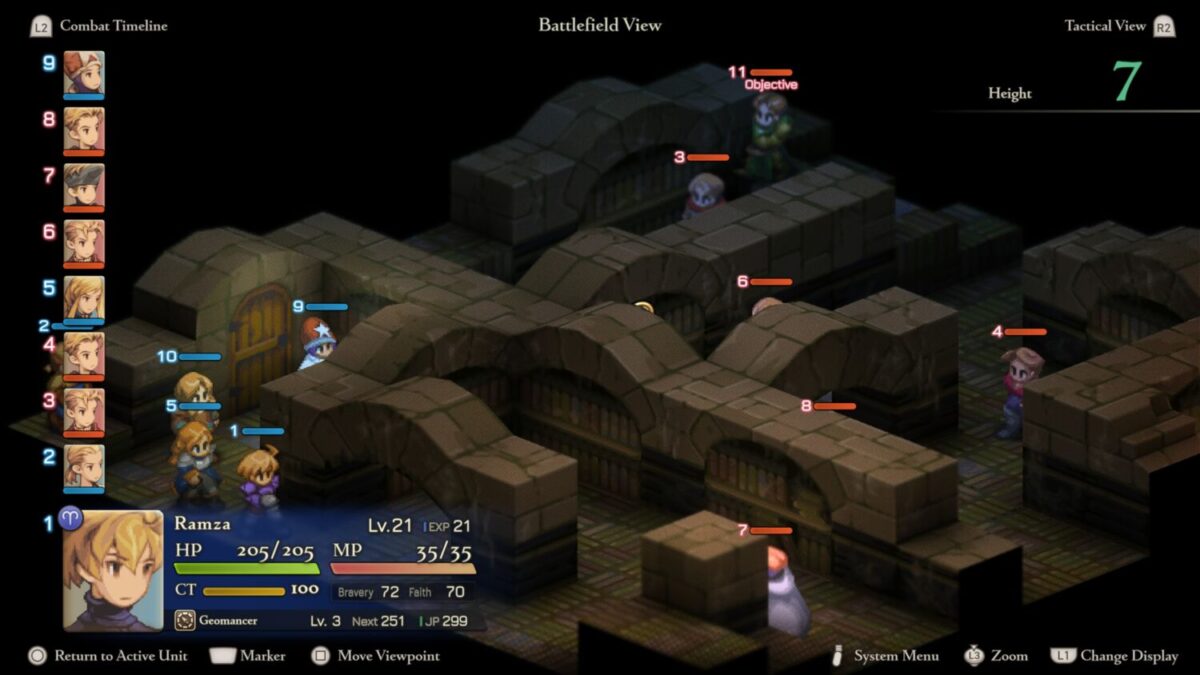 Setting the stage for a roller-coaster ride of despair, betrayal, and hope, the romp opens with the introduction of Ramza Beoulve, a forgotten hero during a civil war between the ruling forces of Prince Goltana (Black Lion) and Duke Larg (White Lion) in Ivalice, known as the War of the Lions. There’s more to this game of thrones than it seems, however, and the narrator makes no secret of the unreliable annals of history and lays it out for the players – with the country’s leadership in limbo after the 50-Year War against the nation of Ordalia, both Prince Orinas and Princess Ovelia are candidates, but backed by different factions.