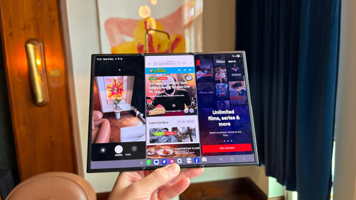 Look past that, and the Galaxy Z TriFold has some multitasking tricks up its sleeves. The device supports up to three edge-to-edge portrait panels, plus a fourth floating window for those who need it, with an intuitive user interface (UI) that makes it easy to navigate, resize, or rearrange them, as well as drag and drop content. As the first Samsung smartphone with a standalone DeX feature, it can also be wirelessly connected to a TV or an external monitor for dual-display use, albeit with a slight latency.