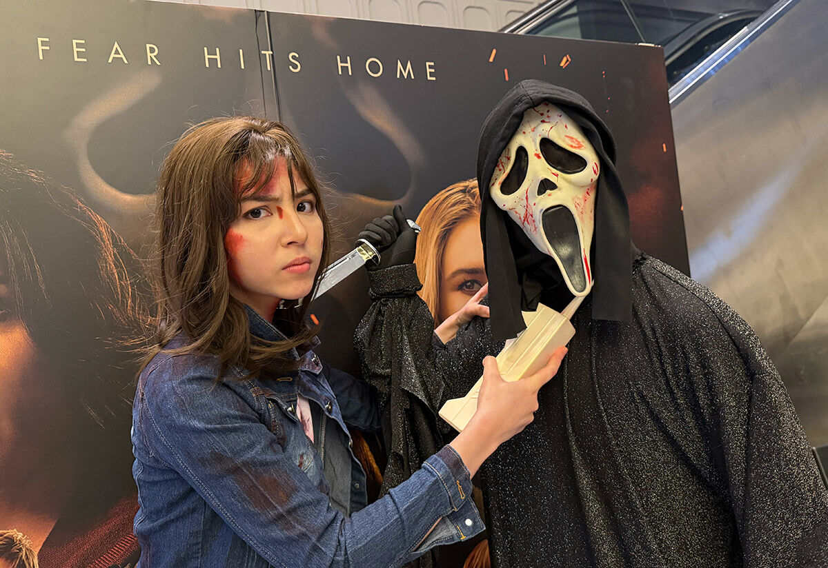 The excitement was palpable even before the start of an exclusive Geek Culture screening held at Golden Village Bugis+, in collaboration with UIP Singapore, on 2 March. As multiple Ghostfaces roamed the premises in search of their next victim, the more enthusiastic cosplayers put up a show for added flair, with the 150-strong crowd receiving a special postcard that reads, “Welcome to Woodsboro, where the past never dies!” Sounds about right.