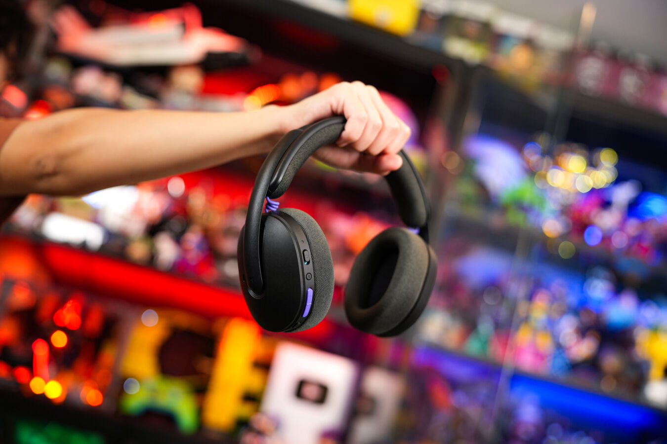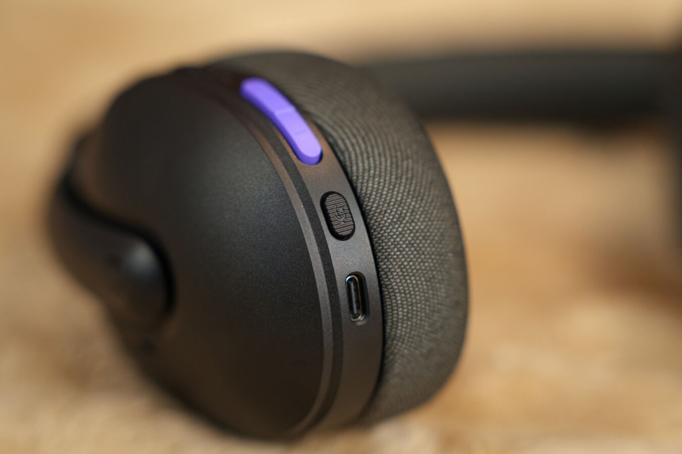 Alongside an all-plastic form factor, these headphones sport a straightforward, bare-bones design, without the RGB lighting that typically adorns gaming-centric offerings. A subtle purple-accented power button is the only hint of colour on the black model (the white version is teal-tinted), with the lilac colourway bringing the most aesthetic appeal. Buttons are kept to essentials, comprising the on/off switch, a Bluetooth pairing button, a volume rocker, and a mute key for the built-in microphone, all located on the left earcup alongside a USB-C charging port.