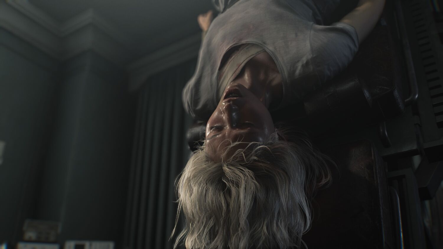 Of course, this is Resident Evil we’re talking about, and there are no coincidences, as Grace soon finds herself stalked and captured by a mysterious hulking individual, Dr Victor Gideon. Enter Leon Kennedy, who’s on the same case as he is suffering from an infection with the same symptoms as those seen on the bodies of the deceased.
