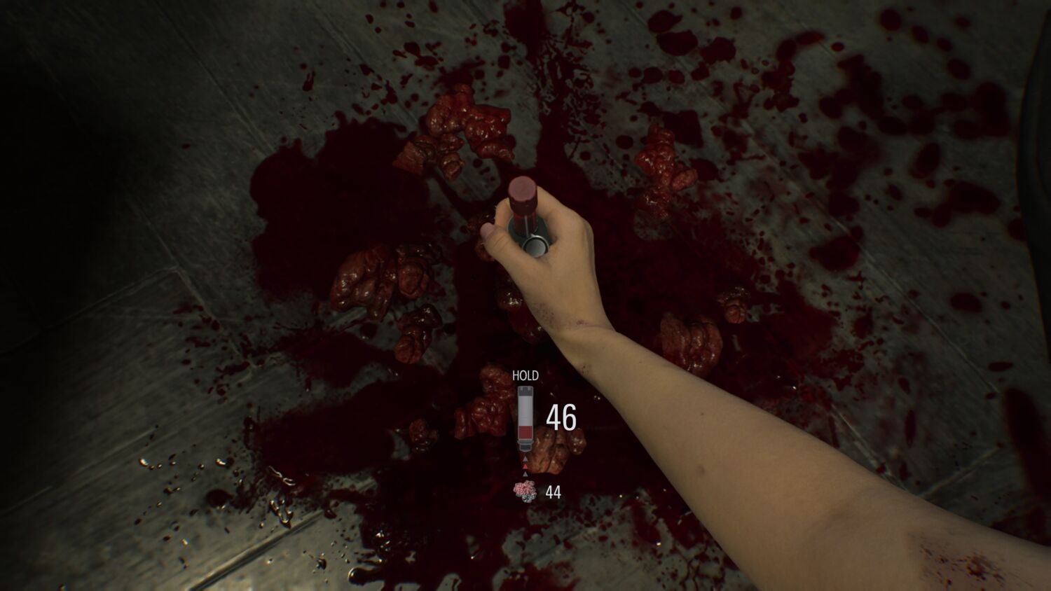 Player progression also defers slightly between the two characters, with Grace having to either find antique coins, à la Resident Evil 7, to unlock permanent stat boosters which improve either health or gun damage and control, or make them herself with the title’s new crafting system, which sees players extracting the blood of fallen foes or set blood collection points.