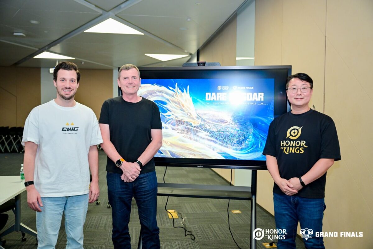 Chief Games Officer Fabian Scheuermann (left), Deputy CEO and COO of the Esports World Cup Foundation Mike McCabe (middle), Tencent’s Global Esports Senior Director James Yang (right)